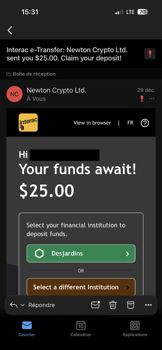 Newton te donne toutes les infos pour faire un virement Interac depuis ta banque.